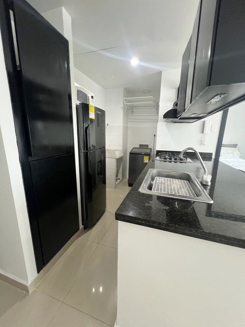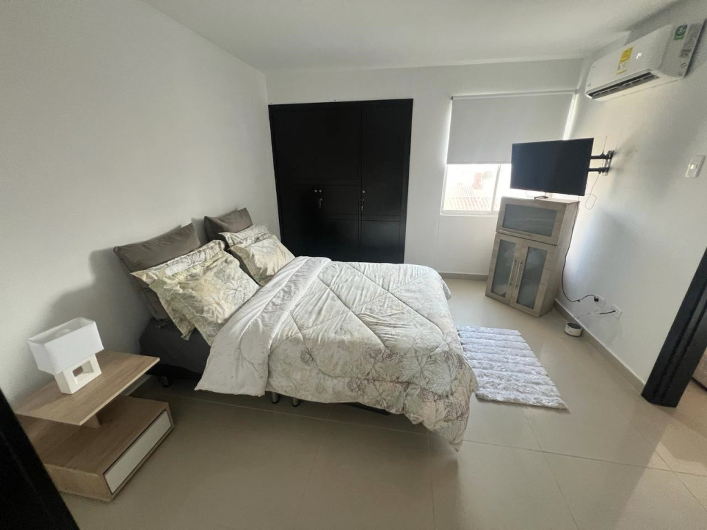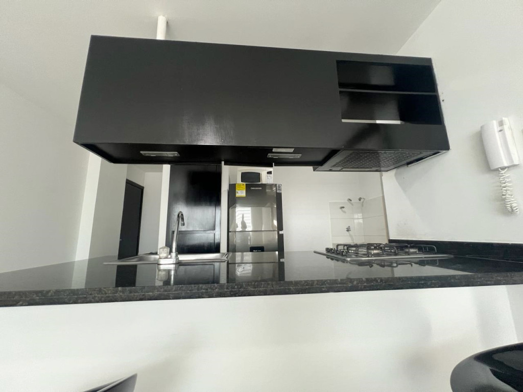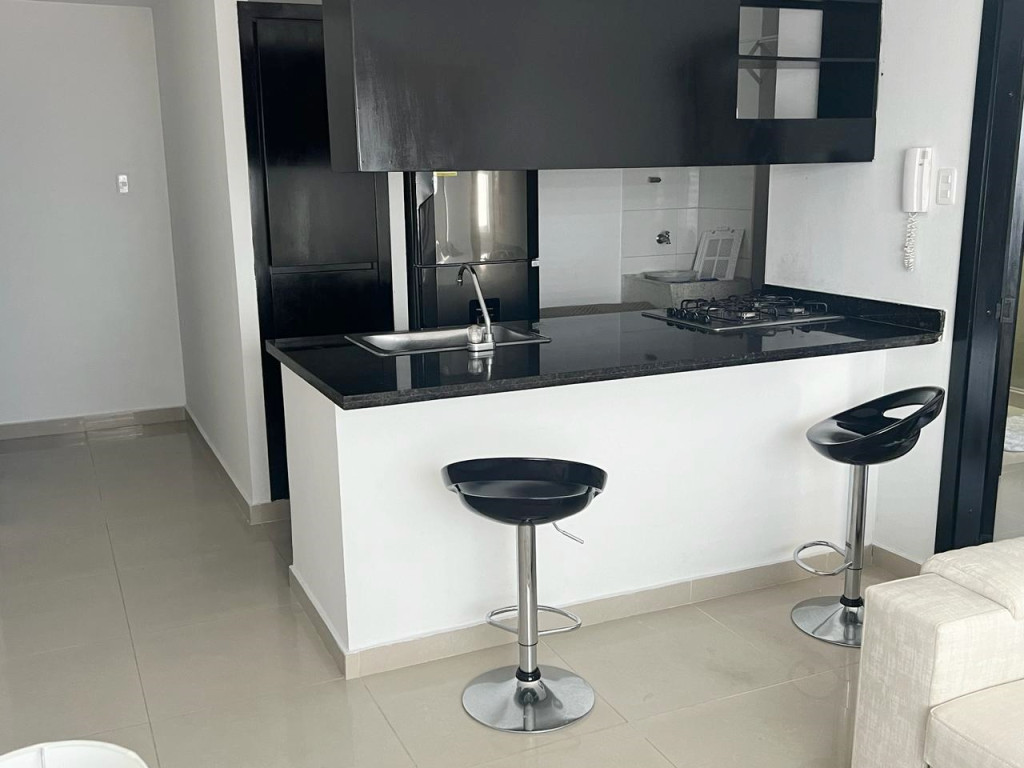 Aparta-estudio amoblado completamente dotado, con un area de 50 m2, consta de un sofacama doble, cocina integral abierta tipo pantry, zona de labores, una alcoba con aire minisplit inverter, su closet y baño interno, dos parqueaderos lineales, pisos en porcelanato, celaduría 24 horas,ascensor, planta eléctrica, excelente ubicacion al norte cerca de centro comercial Buenavista y Viva.